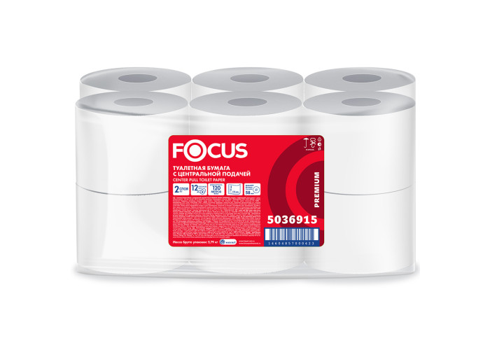 Двухслойная туалетная бумага для диспенсеров Focus Point (Фокус Поинт) в средних рулонах белого цвета с тиснением из целлюлозы для санитарно-гигиенического назначения. Используется в диспенсерах с центральной листовой подачей, что обеспечивает гигиеничное использование. Обладает высокой впитывающей способностью, мягкая и комфортная. Подходит для туалетных комнат с высокой и средней проходимостью. Широко используется в гостиничном бизнесе, сегменте HORECA, подходит для медицинских центров и косметических салонов, общественных заведений и офисов.