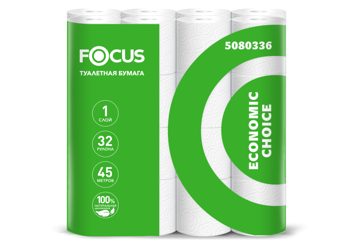 Однослойная туалетная бумага Focus Economic (Фокус Экономичное решение) со втулкой и тиснением, изготовлена из 100% первичной целлюлозы для санитарно-гигиенического назначения. Рулон имеет безупречный белый цвет, а специальное тиснение Scalette придает бумаге особую мягкость и премиальный внешний вид. Подходит для туалетных комнат с низкой и средней проходимостью. Длина рулона - 45 метров.