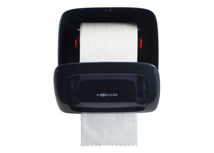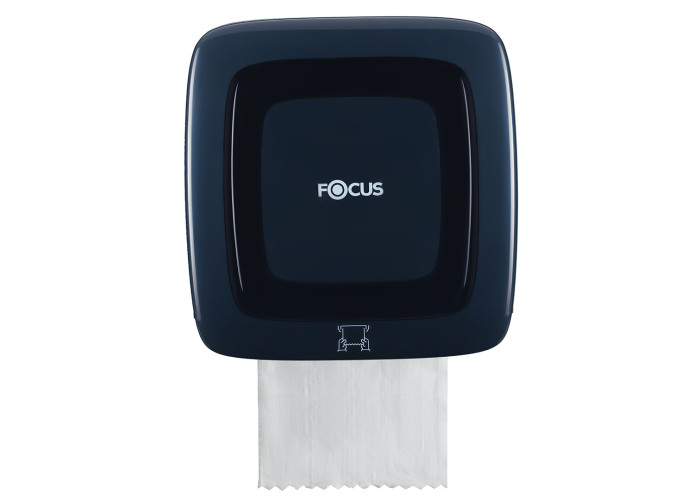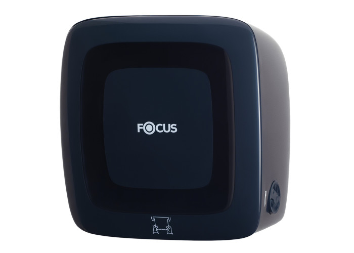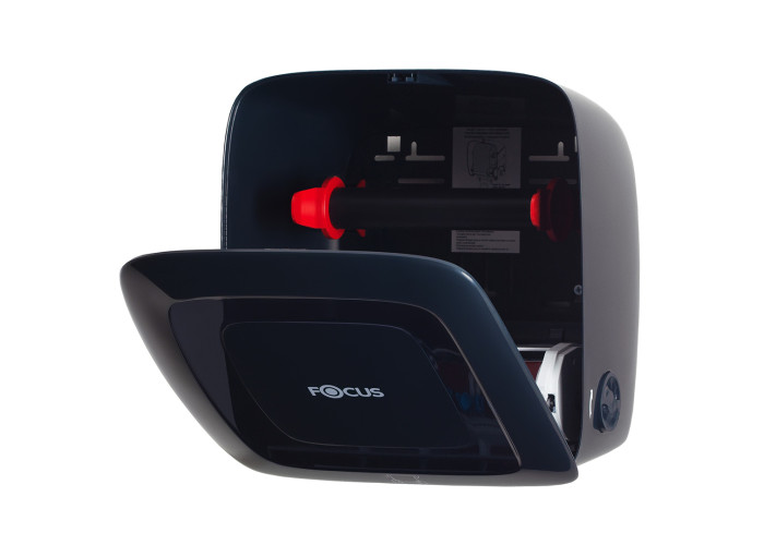 Диспенсер Focus из черного гладкого противоударного пластика для рулонных полотенец с механическим отрывом при удержании листов руками. Предназначен для плотных рулонных полотенец с четкой полосой отрыва. У данной модели диспенсера на корпусе предусмотрена пластиковая туба для фиксации изделия на держателях. Подходит для полотенец с шириной втулки 50мм. Удобно и быстро монтируется на стену с помощью шурупов и расположенных на задней стене изделия отверстий. На боковой стороне находится рычажок для прокручивания рулона бумажной продукции. Полупрозрачная темная панель-вставка помогает регулировать количество бумаги.