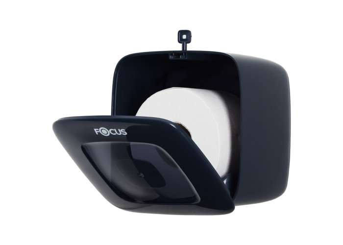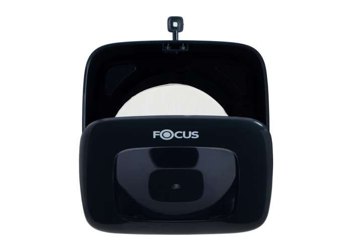 Диспенсер Фокус для туалетной бумаги с центральной вытяжкой черной расцветки, артикул по производителю 8076286. Удобно и быстро монтируется на стену, ударопрочный не маркий пластик. Полупрозрачная панель позволяет отслеживать расход бумаги. К использованию в этом диспенсере рекомендуется бумага диаметром до 200мм.