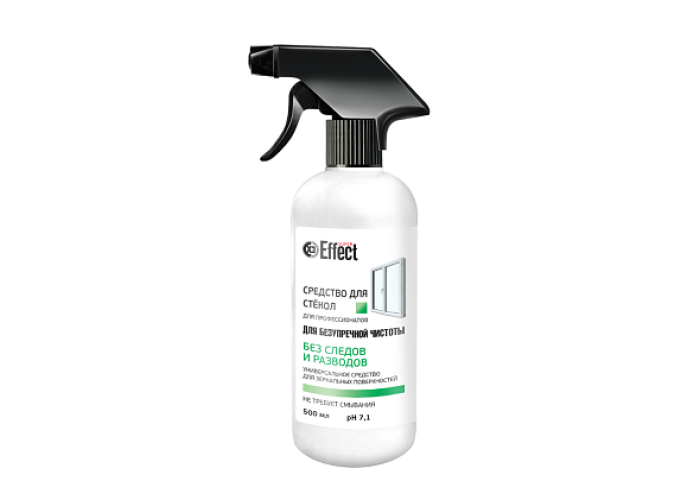 Средство для мытья окон, стекол и зеркал "Effect Super" объёмом 500мл, в пластиковом флаконе с триггером профессионально очистит стеклянные, зеркальные и гладкие (например, кафельные) поверхности и придаст им блеск и свежесть. Подходит для полимерных и окрашенных поверхностей, для пластиковых окон и прозрачных витрин, для цветных витражей из гладкого или мозаичного стекла, для очистки посуды из хрусталя или фарфора.