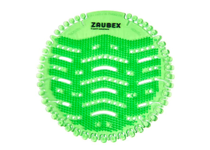 Коврик-сетка для писсуаров дезодорирующий Zaubex с ароматом "зеленое яблоко", полупрозрачный и гибкий, с гофрированной поверхностью предназначен для нейтрализации неприятных запахов в санитарных помещениях (туалетах). Дополнительно к основному свойству дезодорирует помещение, помогает предотвратить заторы водосточных труб и разбрызгивание вне писсуара. На изделии есть датер для фиксации срока начала использования решетки (необходимо оторвать нужное количество "ушек" по краям).