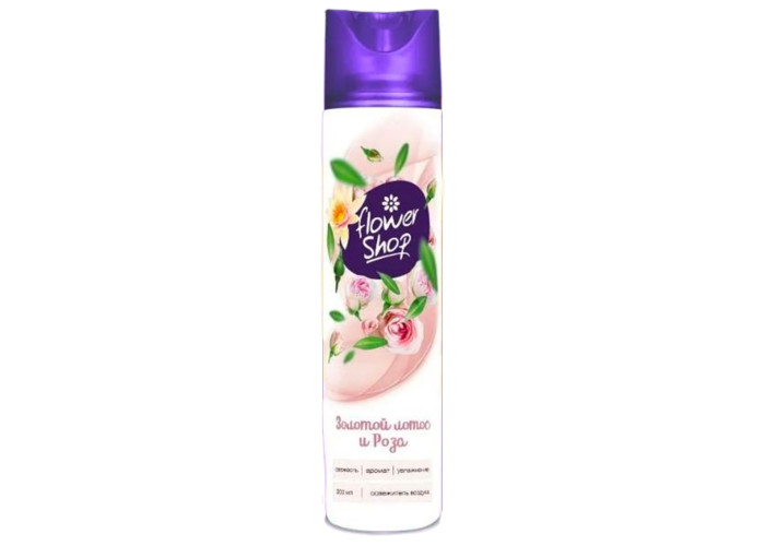Освежитель воздуха Flower Shop с ароматом "Золотой лотос и роза", объём 300 мл, ручная ароматизация. Нейтрализует неприятные запахи и освежает воздух в помещении. В составе натуральные ингредиенты, не вызывающие аллергию. Не содержит озоноразрушающих веществ. Не оставляет следов на мебели, одежде и обоях. Подходит для всех типов помещений: для уборной, кухни, ванной, гостиной.