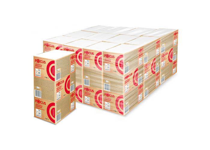 Полотенца бумажные двухслойные листовые Focus Premium Z-fold towel, размер листа 240х200, в пачке 200 листов, прочные и мягкие за счет авторской технологии B-side, хорошо удерживают влагу. Подходят для диспенсеров с листовой подачей. Легко заправляются.