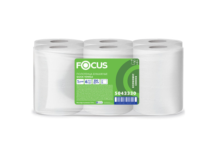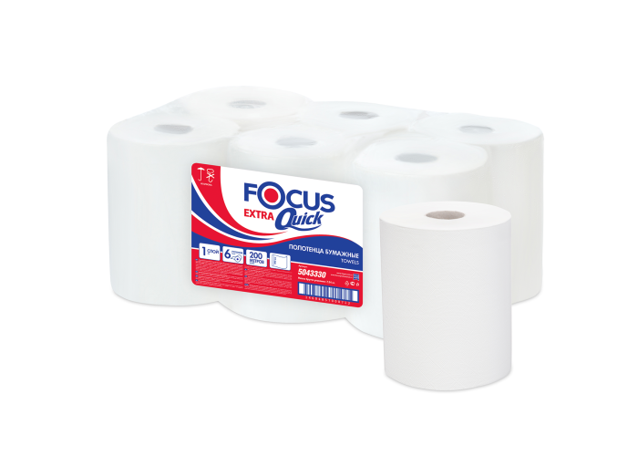 Однослойные бумажные полотенца FOCUS EXTRA QUICK в рулонах прочные и одновременно мягкие, хорошо впитывают и удерживают влагу. Простые в обслуживании, подходят для туалетных комнат с низкой и средней проходимостью. Длина рулона - 200м. В наличии могут быть два варианта диаметра втулки: 38мм и 50мм.