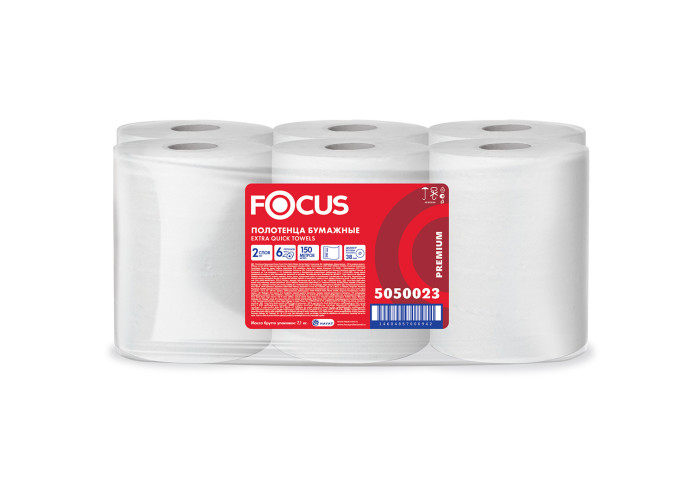 Полотенца бумажные FOCUS EXTRA QUICK 2хслойные в рулонах со втулкой 38мм просты в обслуживании, обладают высокой прочностью. Подходят для туалетных комнат со средней и высокой проходимостью.