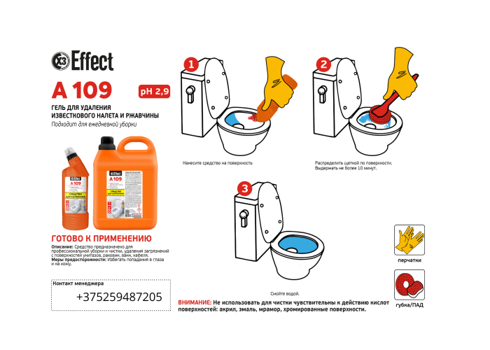 109 EFFECT АЛЬФА Гель для удаления известкового налета и ржавчины , 750мл- универсальное чистящее средство, предназначенное для профессиональной и бытовой чистки, удаления загрязнений с с поверхностей унитазов, раковин, ванн, кафеля.