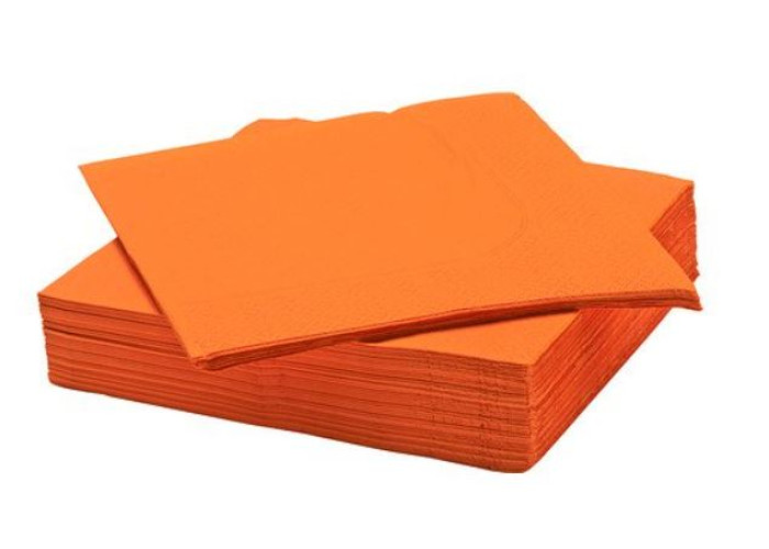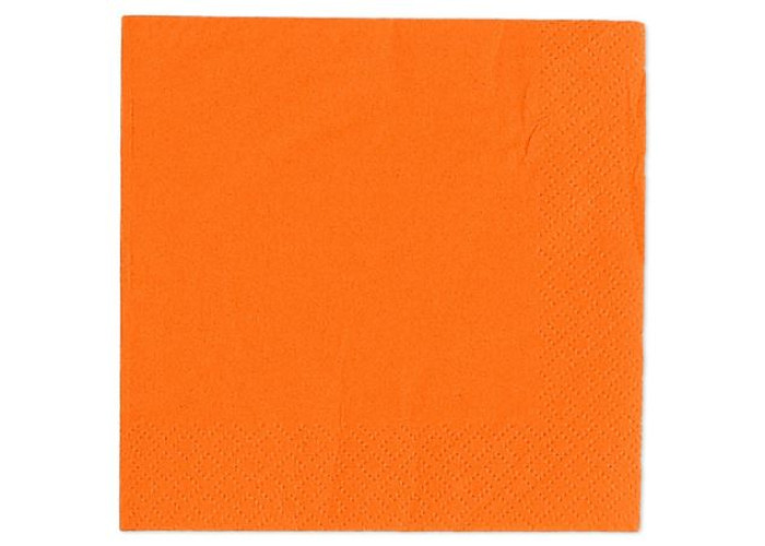 Салфетки оранжевые столовые, 2 слоя, размер 33х33 см, сложение 1/4 (классическое, квадратные), цвет - сочный оранжевый. Подойдут для декорирования праздничного стола, прочно окрашенные, не разваливаются в руках. Материал - 100% первичная целлюлоза, хорошая плотность - 34гр/м2, 200 листов в пачке (9 пачек в коробе), тиснение "рамка"/"камушки" (классическое).