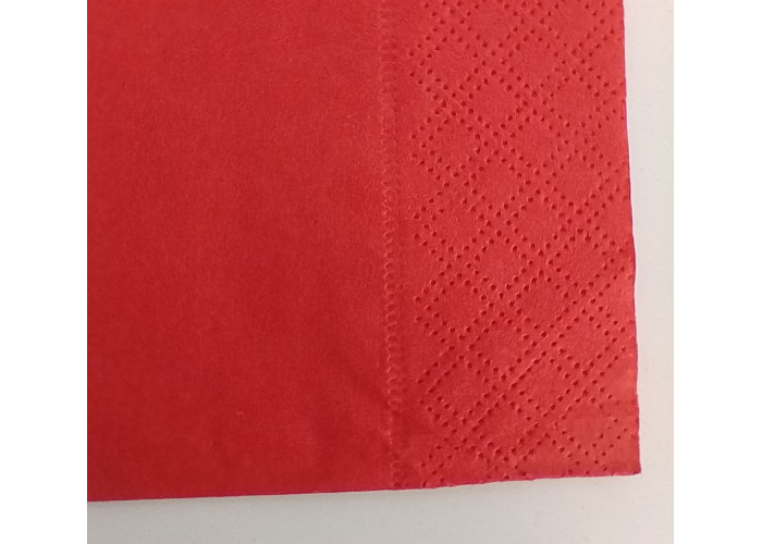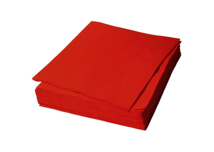 Салфетки красные столовые, 2 слоя, размер 33х33 см, сложение 1/4 (классическое, квадратные), цвет - сочный красный. Подойдут для декорирования праздничного стола, прочно окрашенные, не разваливаются в руках. Материал - 100% первичная целлюлоза, хорошая плотность - 34гр/м2, 200 листов в пачке (9 пачек в коробе), тиснение "рамка"/"камушки" (классическое).