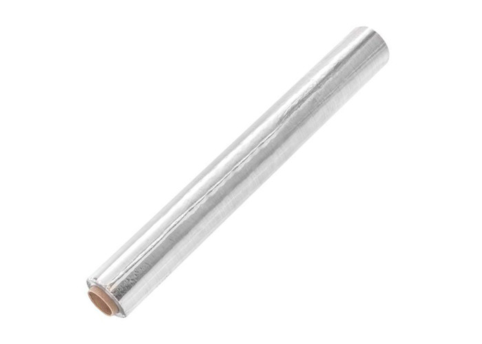Фольга пищевая алюминиевая Стандартная плотностью 8мкм, размером 44смх100м в рулоне предназначена для запекания мяса/рыбы в собственном соку на гриле или в духовке, для упаковки и хранения пищевой продукции. При упаковке в фольгу горячая пища долго сохраняет температуру, а после охлаждения имеет натуральный вкус, не изменяет запах и аромат. При быстрой упаковке устойчива к разрывам, хорошо держит нужную форму и вминается. Позволяет готовить в духовке еду без добавления жиров (масел), помогает сохранить духовку чистой. Изготовлена из пищевого алюминия, разрешенного для контакта с пищей.
