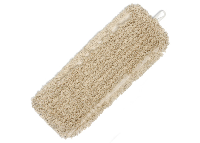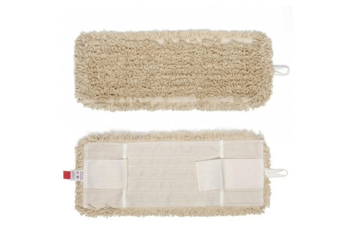 Насадка на швабру МОП бежевая плоская, размер полотна 50х15см, крепления универсальные - карман, ушки, подойдет для влажной уборки твердых поверхностей в местах с низкой и средней загрязненностью. Ворс средней длины, пробивной, петельный (петли эффективно собирают и удерживают грязь). Изготовлен из хлопка, поэтому хорошо впитывает влагу и собирает грязь. Насадка не слетает со швабры за счет двойного крепления к флаундеру (держателю).