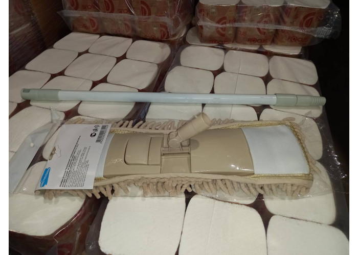 Швабра плоская стандартная "Чистюлино" с телескопической ручкой (два деления) из прочного АВС-пластика/металла (железо), общая длина изделия 120см, размер полотна 42х12см, педаль для снятия мопа. Поставляется в комплекте с насадкой вида "лапша" из шенилла. Подходит для уборки плоских поверхностей, полов. Цвета основания и мопа - микс (может отличаться от изображения на фото, если это важно - уточняйте ассортимент у менеджеров). Упаковка - карта и полиэтиленовый уплотненный пакет. Артикул по производителю ML-654.
